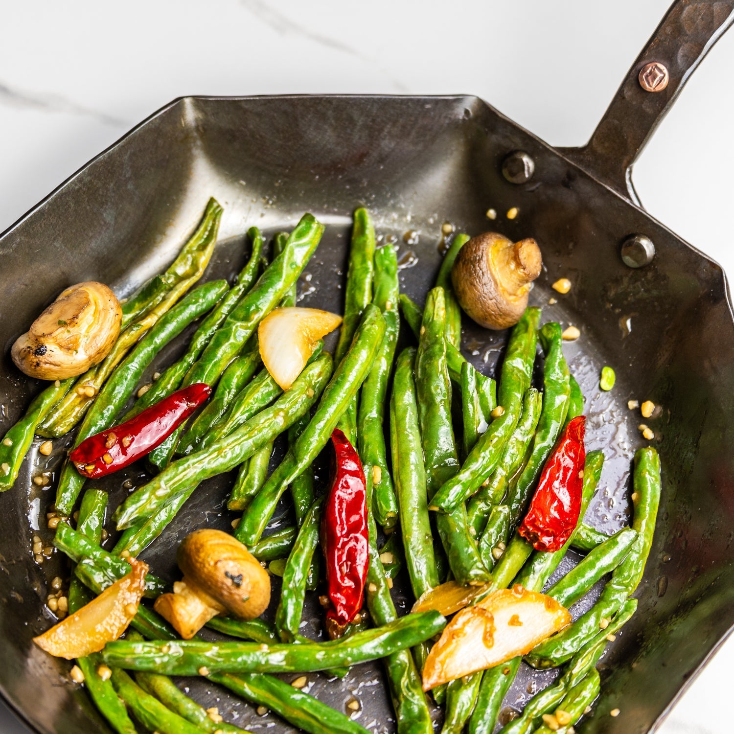 The hybrid pan was forged as a fun experiment but has quickly become a customer favorite due to its usefulness in the kitchen. It is a unique shape design that combines our polygon skillet’s ideal pour spouts with the sautéing ability of a classic round pan. Even professional chefs find themselves drawn to this useful and beautiful design. This skillet is perfect for the chef who enjoys sautéing and cooking foods that require pouring.